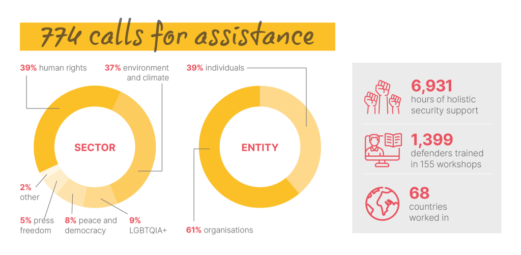 Open Briefing received 774 calls for assistance from grassroots activists, community groups, and social movements at risk. This represents a six-fold increase over five years, and our team is now responding to around 15 new cases every week.