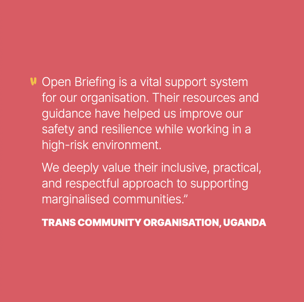 Open Briefing exists to keep that hope alive and to protect the people and movements who turn it into action. With your continued support, we can renew and extend this protection infrastructure at a time when it matters more than ever.
